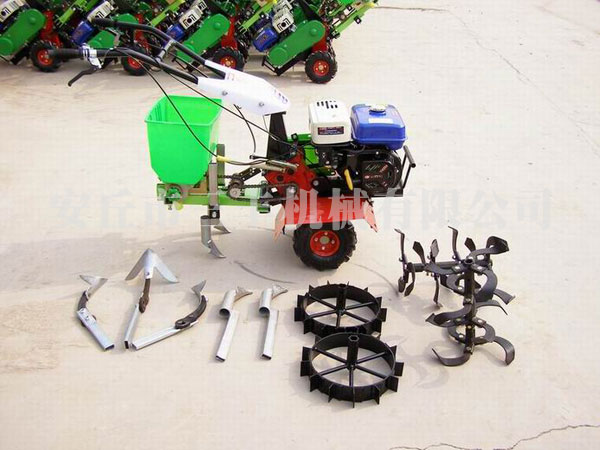 本機可以配的農具有:播種施肥耬、除草輪、耘鋤、旋耕機等。